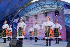 Ловеч (7 септември 2024) Втори ден старият квартал на Ловеч „Вароша“ се оглася от фолклорни ритми от всички краища на страната, в изпълнение на участниците в Националния фолклорен събор „Ритъмът на България“. Снимка: кореспондент на БТА в Ловеч Даниела (БТ)