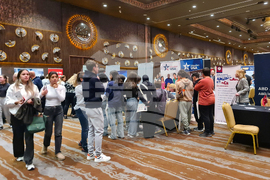 Анкара (21 октомври 2024) За трета година Икономическия университет - Варна участва в Международното образователно изложение на Турция IEFT (International Education Fairs of Türkiye). Тази година събитието започна в турската столица Анкара и ще продължи в Измир и Истанбул (20 - 27 октомври). Вчера Икономическия университет - Варна бе представен на изложението в хотел „Шератон“ в Анкара, което бе посетено от много ученици, студенти и техните родители. На снимката: координаторът по програми за обмен в Международен отдел на ИУВ Гергана Ценова (вдясно).