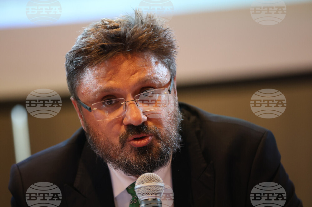 Село Баня (13 декември 2024) Форум "БГ туризъм - Зима 2024/2025", организиран от Българската телеграфна агенция (БТА) с партньорството на Българския съюз по балнеология и СПА туризъм (БСБСПА), се провежда в "Гранд хотел Терме" в село Баня, община Разлог, област Благоевград. На снимката: служебният министър на туризма Евтим Милошев.