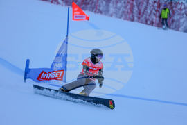 Банско (18 януари 2025) На писта „Алберто Томба“ в Банско се провеждат квалификации за Световната купа по алпийски сноуборд за мъже и жени. На снимката: 15-годишната Малена Замфирова остана на крачка от това да преодолее първия етап на квалификациите на паралелния гигантски слалом от Световната купа по алпийски сноуборд в Банско.