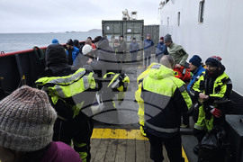 Антарктика (9 февруари 2025) Петата група от 33-ата българска антарктическа експедиция се качи на борда на Научноизследователския кораб „Св. св. Кирил и Методий“ НИК 421.