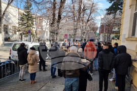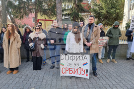 София (9 февруари 2025) Протест под надслов „София подкрепи студентите" организиран от сръбската общност в България пред посолството на Сърбия в София.