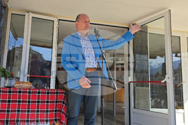 Априлци (22 март 2025) С ритуално зарязване на овощно дърво в квартал Острец в Априлци посрещат пролетта. Двадесет и втори март е празник на Острец и се чества като Ден на овощаря и Първи ден на пролетта. След приветствието на кмета на общината Тихомир Кукенски (на снимката) се провежда празнична програма, в която освен местни самодейци, деца и ученици, се включват гайдарски и кукерски състав при Народно читалище „Христо Ботев - 1869” в Калофер.