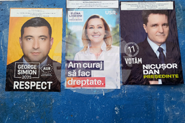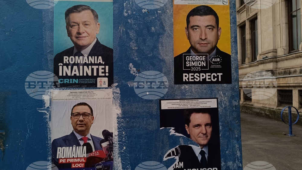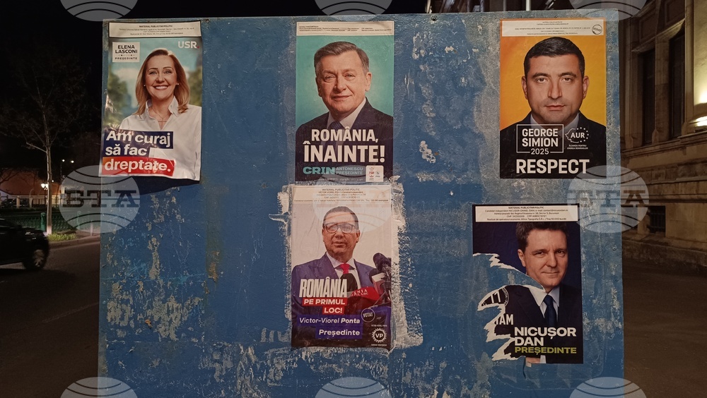 Букурещ (15 април 2025) Предизборни плакати на някои от кандидатите за президент на Румъния на ключови кръстовища в Букурещ.