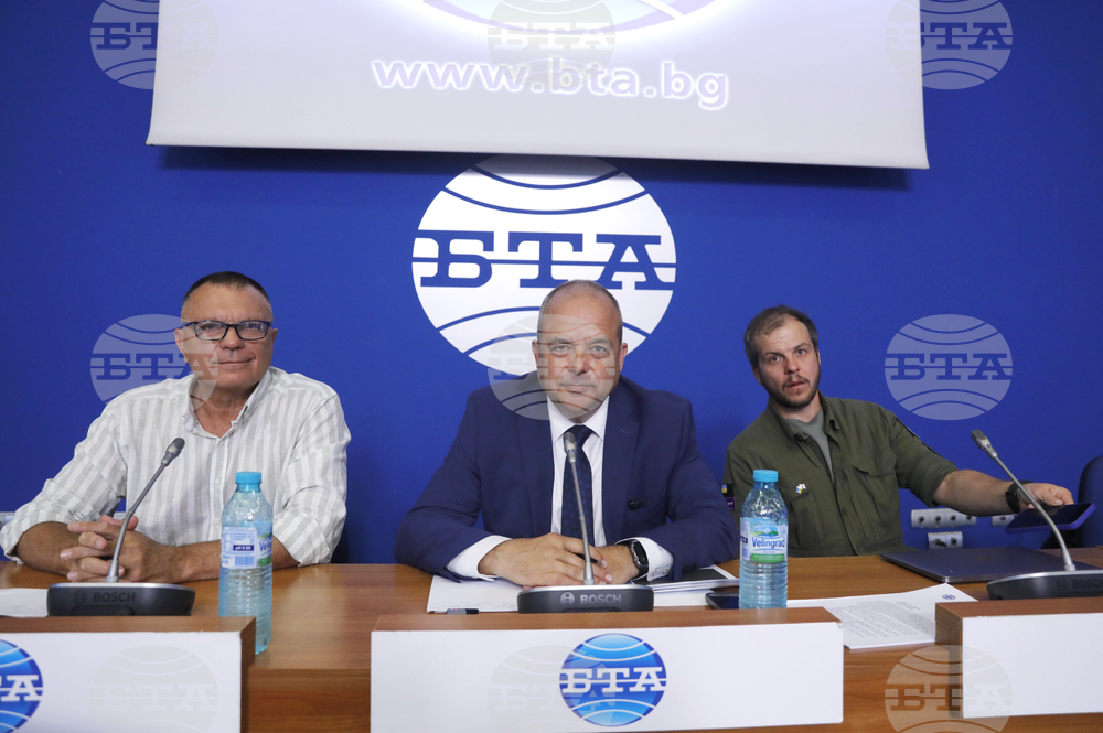 София (12 юни 2025) В Националния пресклуб на БТА - София се провежда пресконференция на тема: "Проникване на зловредно руско влияние през български медии". На снимката (от ляво надясно): съпредседателят на АСБ доц. Момчил Дойчев, съпредседателят на АСБ Иван Анчев и Генадий Воробьов.