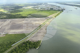FILE - The nearly $3 billion Mid-Barataria Sediment Diversion project along the Mississippi River, intended to stave off coastal land loss in southeastern Louisiana, is seen during a flyover with the environmental coalition group Restore the Mississippi River Delta, Aug. 29, 2024. (AP Photo/Jack Brook, File)