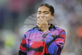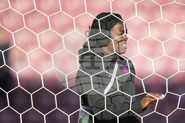 England's Michelle Agyemang walks on the pitch ahead of the Women's Euro 2025 semifinals soccer match between England and Italy at Stade de Geneve in Geneva, Switzerland, Tuesday, July 22, 2025. (AP Photo/Martin Meissner)