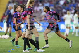 Italy's Cristiana Girelli exercises during warmup before the Women's Euro 2025 semifinals soccer match between England and Italy at Stade de Geneve in Geneva, Switzerland, Tuesday, July 22, 2025. (AP Photo/Alessandra Tarantino)