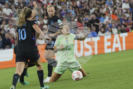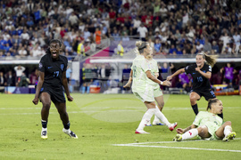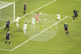 England's Lauren James, second left, failed to score during the Women's Euro 2025 semifinals soccer match between England and Italy at Stade de Geneve in Geneva, Switzerland, Tuesday, July 22, 2025. (AP Photo/Martin Meissner)