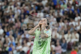 Italy's Cristiana Girelli walks on the pitch ahead of the Women's Euro 2025 semifinals soccer match between England and Italy at Stade de Geneve in Geneva, Switzerland, Tuesday, July 22, 2025. (AP Photo/Martin Meissner)