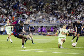 England's Ella Toone kicks the ball ahead of Italy's Barbara Bonansea during the Women's Euro 2025 semifinals soccer match between England and Italy at Stade de Geneve in Geneva, Switzerland, Tuesday, July 22, 2025. (AP Photo/Martin Meissner)