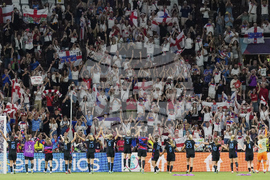 England's Jess Carter, left, applauds the fans at the end of the Women's Euro 2025 semifinals soccer match between England and Italy at Stade de Geneve in Geneva, Switzerland, Tuesday, July 22, 2025. (AP Photo/Alessandra Tarantino)