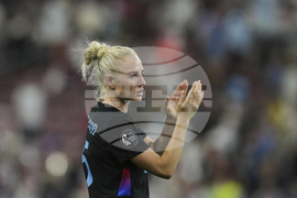 England's Alex Greenwood applauds the fans at the end of the Women's Euro 2025 semifinals soccer match between England and Italy at Stade de Geneve in Geneva, Switzerland, Tuesday, July 22, 2025. (AP Photo/Alessandra Tarantino)