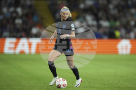 England's Chloe Kelly controls the ball during the Women's Euro 2025 semifinals soccer match between England and Italy at Stade de Geneve in Geneva, Switzerland, Tuesday, July 22, 2025. (AP Photo/Alessandra Tarantino)