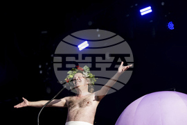 French artist Philippe Katerine performs on the main stage, during the 48th edition of the Paleo Festival, in Nyon, Switzerland, Thursday, July 24, 2025. (Jean-Christophe Bott/Keystone via AP)