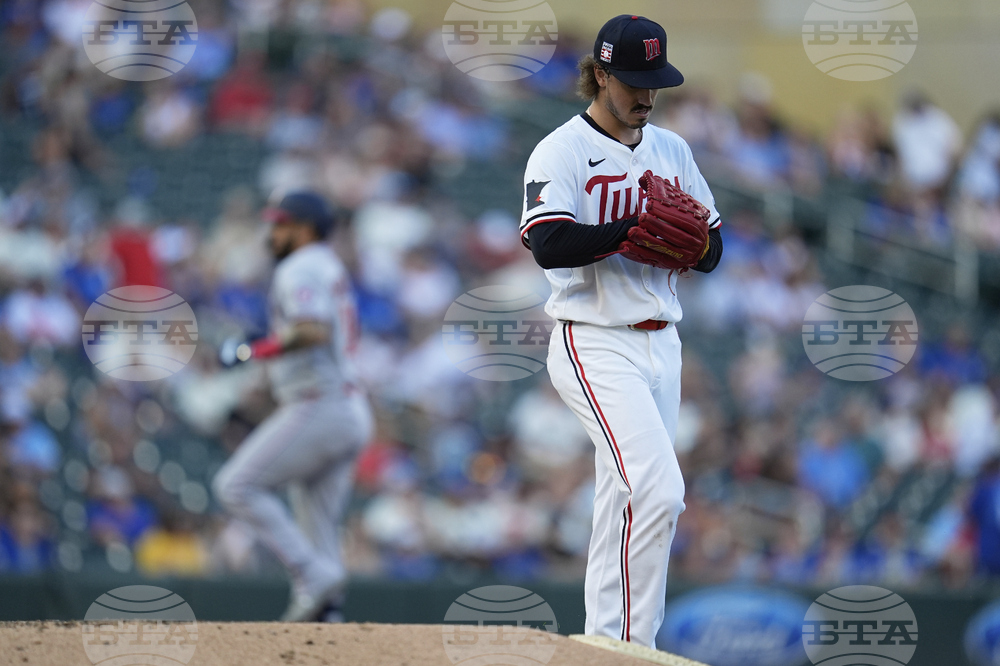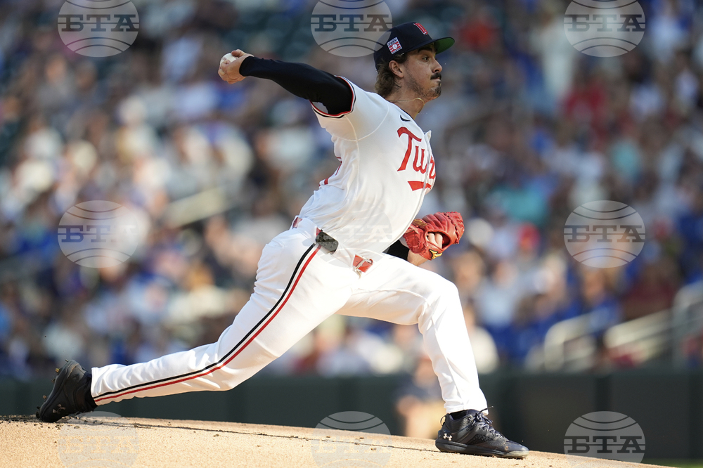 Minnesota Twins starting pitcher Joe Ryan (41) delivers during the first inning of a baseball game against the Washington Nationals Saturday, July 26, 2025, in Minneapolis. (AP Photo/Abbie Parr)