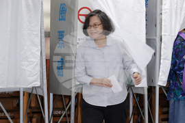 Former Taiwan President Tsai Ing-wen casts her ballot at a polling station in Taipei, Taiwan, Saturday, July 26, 2025 as Taiwanese are casting their votes to determine whether to oust about one-fifth of their lawmakers, all from the opposition Nationalist Party, in elections. (AP Photo/Chiang Ying-ying)