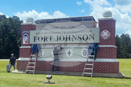 FILE - A sign at west Louisiana U.S. Army base displays the base's new name in Vernon Parish, La., June 13, 2023. (Crystal Stevenson/The American Press via AP, File)