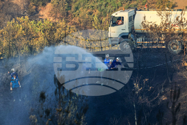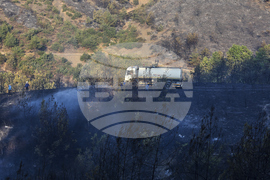 Firefighters work to extinguish a wildfire in Bursa, Turkey, Sunday, July 27, 2025. (Sercan Ozkurnazli/DIA Images via AP)