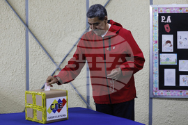 Venezuela's President Nicola Maduro votes during municipal elections in Caracas, Venezuela Sunday, July 27, 2025. (AP Photo/Cristian Hernandez)