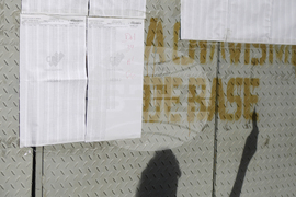 A voter checks registration lists at a polling station during municipal elections in Caracas, Venezuela Sunday, July 27, 2025. (AP Photo/Ariana Cubillos)