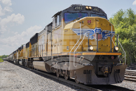 FILE - A Union Pacific train travels through Union, Neb., July 31, 2018. (AP Photo/Nati Harnik, File)
