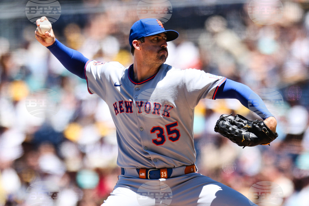 New York Mets starting pitcher Sean Manaea works against a San Diego Padres batter during the third inning of a baseball game Tuesday, July 29, 2025, in San Diego. (AP Photo/Gregory Bull)