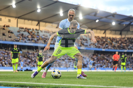 RFS's Dmitrijs Zelenkovs shields the ball during the Champions League qualifying round soccer match between Sweden's Malmö FF and Latvia's RFS, Wednesday, July 30, 2025, in Malmö, Sweden. (Andreas Hillergren/TT News Agency via AP)
