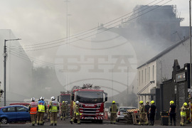 Firefights attend a blaze at an industrial estate in Glasgow, Scotland, Thursday July 31, 2025. (Craig Meighan/PA via AP)