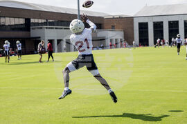 Alabama defensive back Dre Kirkpatrick Jr. (21) works through drills during an NCAA college football practice, Thursday, July 31, 2025, at the Thomas-Drew Practice Fields in Tuscaloosa, Ala. (AP Photo/Vasha Hunt)