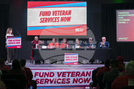 IMAGE DISTRIBUTED FOR NATIONAL NURSES UNITED - Nurses, Veterans and Community Members seen at Fund Veteran Services Now! Town Hall to stop cuts to our VA and to protect our federal workers at Transforming Lives Bible Church on Thursday, July 31, 2025 in Augusta, Ga. (Sean Rayford/AP Content Services for National Nurses United)
