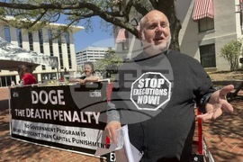 FILE - Abraham Bonowitz of the national advocacy group Death Penalty Action speaks at an event outside the state capitol in Tallahassee, Fla. on Wednesday, March 19, 2025 to advocate against the execution of Edward James scheduled for March 20, 2025. (AP Photo/Kate Payne, File)