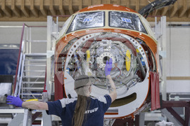 FILE - A PC 12 aircraft manufactured by Pilatus Aircraft Ltd. in Stans is being produced in a Pilatus production hall in Stans in the canton of Nidwalden on Monday, April 8, 2025. (Urs Flueeler/Keystone via AP)