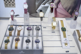 FILE - Swiss watches from the Jowissa brand are displayed in the window of a watch shop on Grendelstrasse in Lucerne's old town on Wednesday, April 16, 2025. (Urs Flueeler/Keystone via AP)