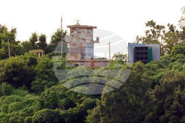 A North Korean military guard post, left, and loudspeaker are seen from Paju, South Korea, near the border with North Korea, Sunday, Aug. 10, 2025. (AP Photo/Ahn Young-joon)