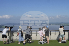 Visitors watch North Korean side from the Unification Observation in Paju, South Korea, near the border with North Korea, Sunday, Aug. 10, 2025. (AP Photo/Ahn Young-joon)