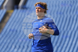 Buffalo Bills' James Cook stands on the sidelines during the second half of an NFL preseason football game against the New York Giants Saturday, Aug. 9, 2025, in Orchard Park, N.Y. (AP Photo/Jeffrey T. Barnes)