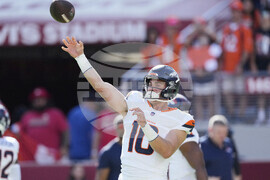 Denver Broncos quarterback Bo Nix (10) throws a pass during the first half of a preseason NFL football game against the San Francisco 49ers, Saturday, Aug. 9, 2025, in Santa Clara, Calif. (AP Photo/Godofredo A. Vásquez)