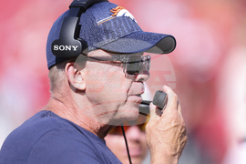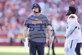Denver Broncos head coach Sean Payton walks along the sideline during the first half of a preseason NFL football game against the San Francisco 49ers, Saturday, Aug. 9, 2025, in Santa Clara, Calif. (AP Photo/Kelley L Cox)