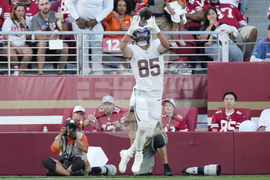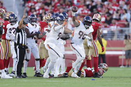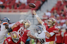 of a preseason NFL football game Saturday, Aug. 9, 2025, in Santa Clara, Calif. (AP Photo/Kelley L Cox)