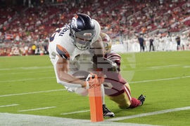 Denver Broncos tight end Caden Prieskorn (86) scores a touchdown during the second half of a preseason NFL football game against the San Francisco 49ers, Saturday, Aug. 9, 2025, in Santa Clara, Calif. (AP Photo/Godofredo A. Vásquez)
