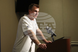 San Francisco 49ers quarterback Mac Jones fields questions during a press conference after a preseason NFL football game against the Denver Broncos, Saturday, Aug. 9, 2025, in Santa Clara, Calif. (AP Photo/Godofredo A. Vásquez)