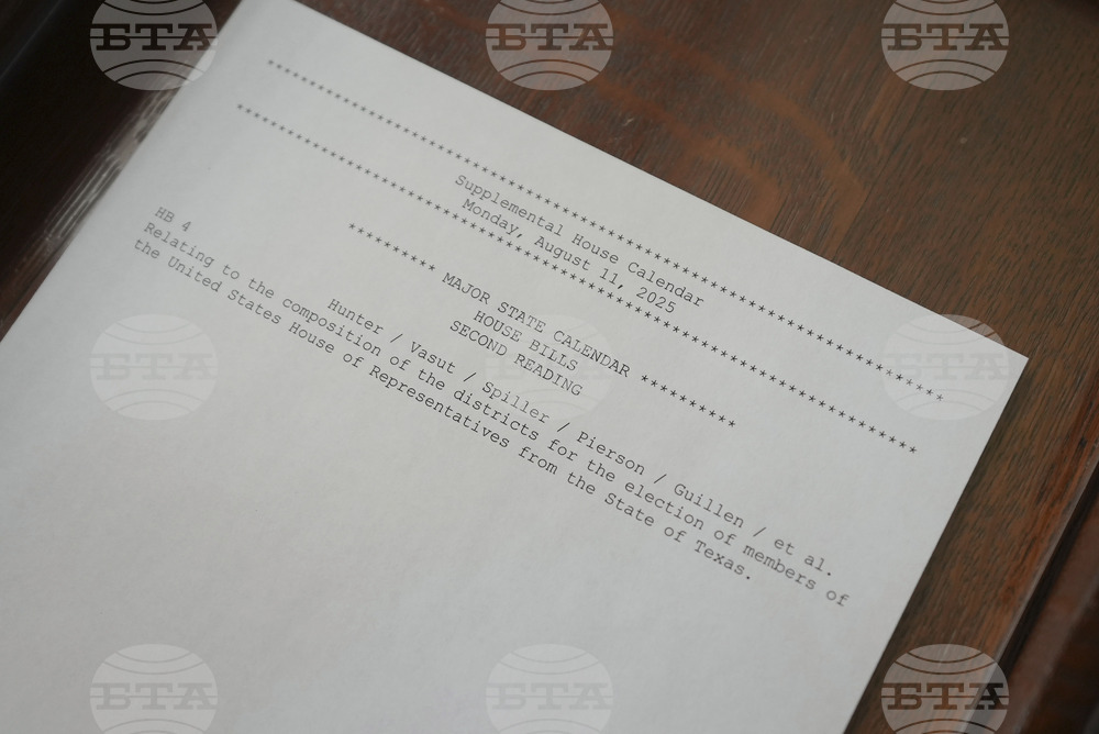 The Supplemental House Calendar with HB4, the Congressional redistricting bill, is left on a representative's desk in the House Chamber at the Capitol in Austin, Texas, Monday, Aug. 11, 2025. (Jay Janner/Austin American-Statesman via AP)