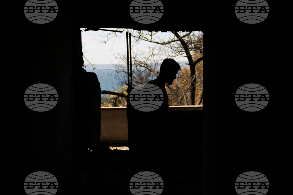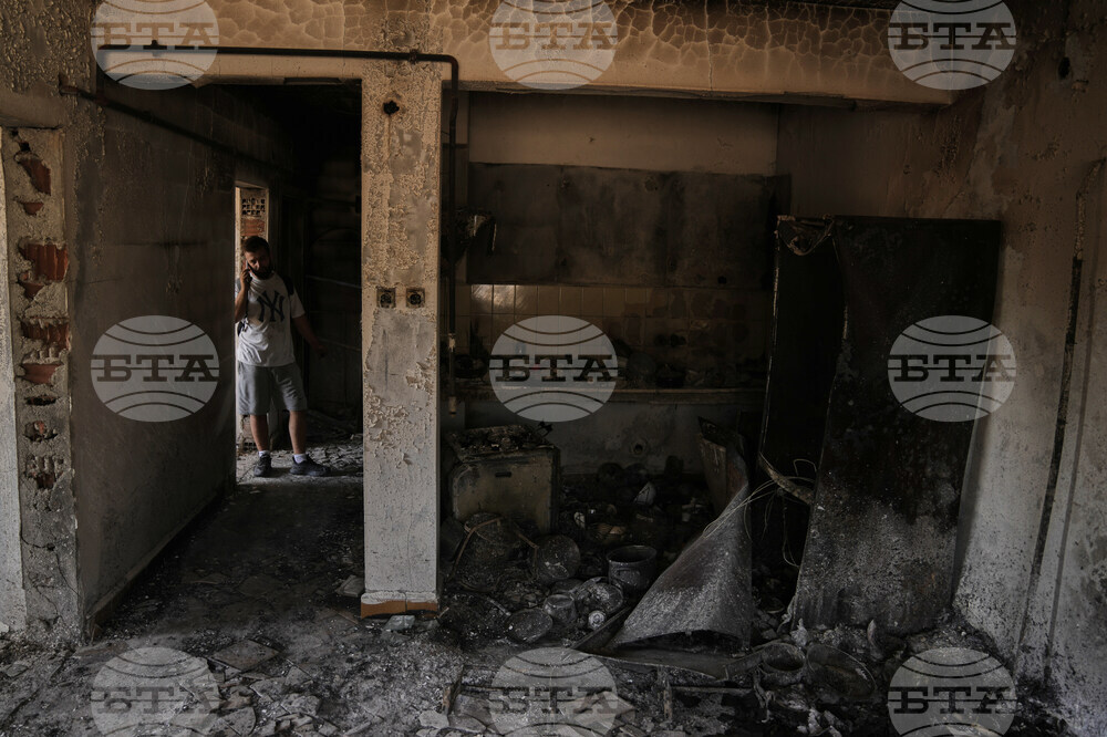 A man inspects his burned house after a fire in Guzelyeli, outskirts Canakkale, northwest Turkey, Tuesday, Aug. 12, 2025. (AP Photo/Khalil Hamra)