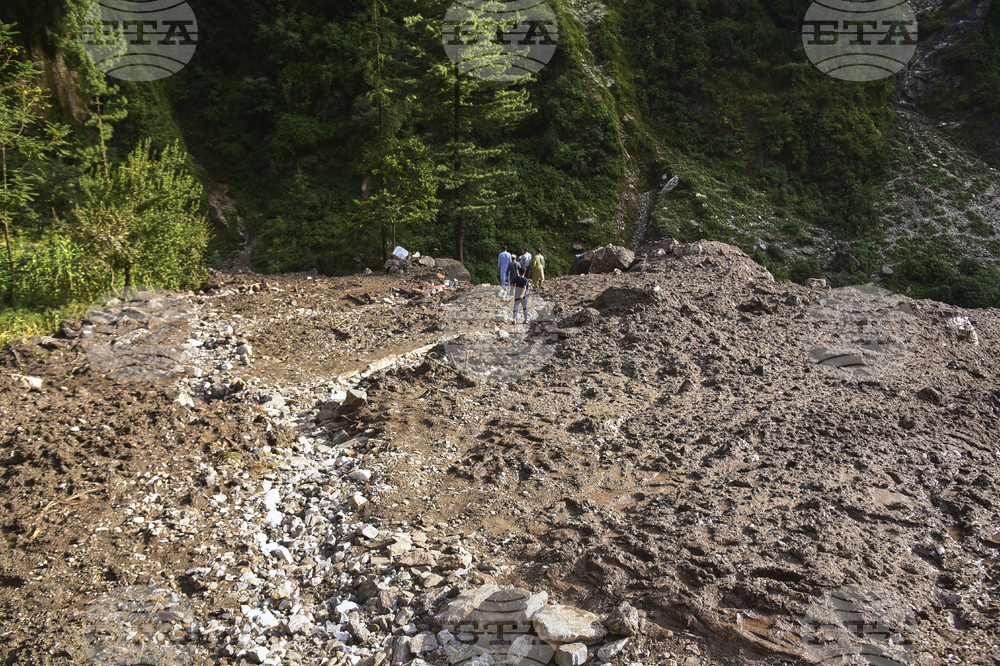 Villagers walk through the muddy area at the incident site of cloudburst that triggered flash flood, in Naryan Behak village near Muzaffarabad, the main town of Pakistan's controlled Kashmir, Friday, Aug. 15, 2025. (AP Photo/M.D. Mughal)