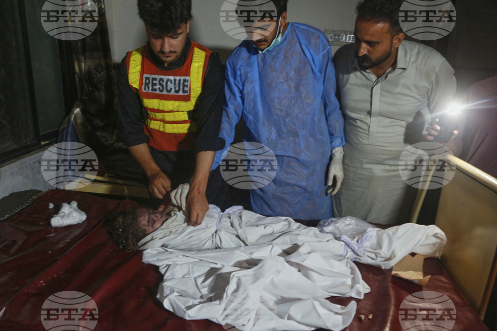 Paramedics arrange bodies of the victims of flash flooding at a local hospital in Pir Baba, in Buner district, in Pakistan's northwest, Friday, Aug. 15, 2025. (AP Photo/Muhammad Sajjad)