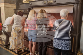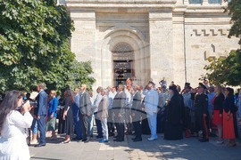 Варна (15 август 2025) Варна отбелязва днес празника си Свето Успение Богородично. Варненският и Великопреславски митрополит Йоан (в среадата) отслужва тържествена света литургия в катедралния храм в града. След това тържествено се издига флагът на Варна.
