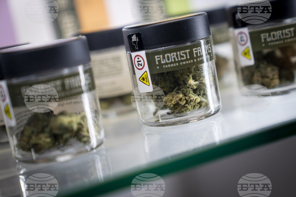 FILE - Cannabis flowers are displayed for sale, Jan. 24, 2023, in New York. (AP Photo/John Minchillo, File)