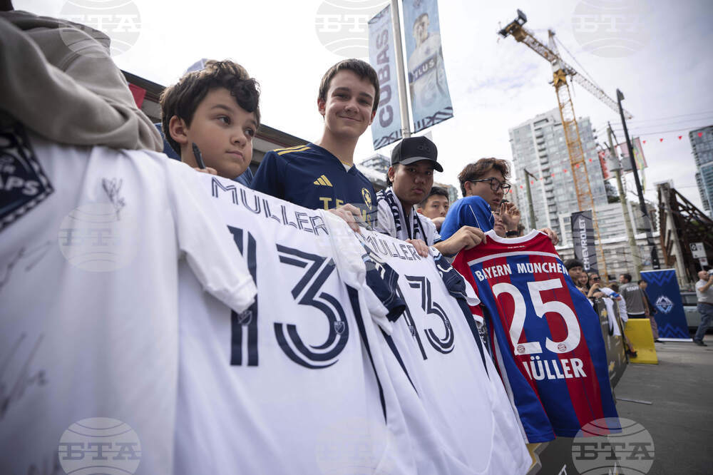 Fans wait for Vancouver Whitecaps' Thomas Muller before an MLS soccer match against Houston Dynamo in Vancouver, British Columbia, Sunday, Aug. 17, 2025. (Ethan Cairns/The Canadian Press via AP)