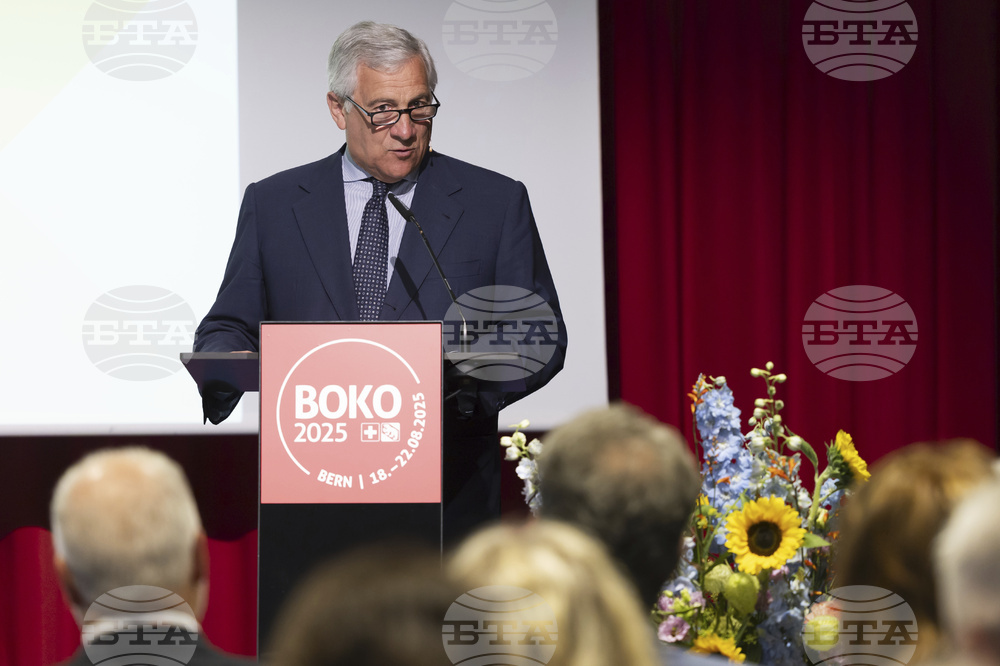 Italy's Deputy Prime Minister and Foreign Minister Antonio Tajani speaks during the Swiss ambassadors conference, during an official visit in Bern, Switzerland, Tuesday, Aug. 19, 2025. (Peter Klaunzer/Keystone via AP)